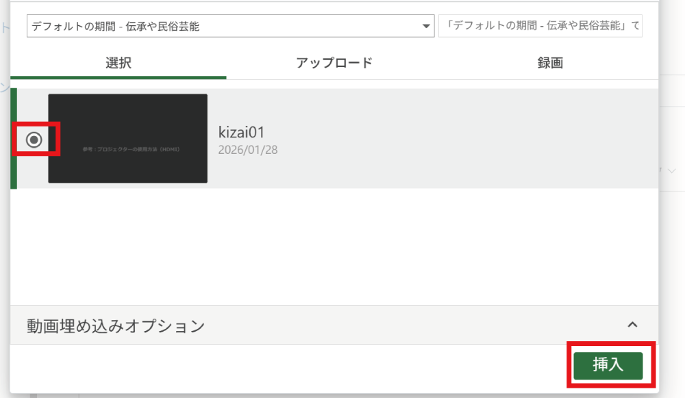 Panoptoを登録したコースの任意の教材を開き、Panoptoアイコンをクリックします。