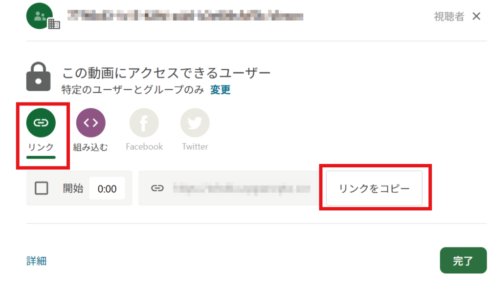 「リンク」が選択されていることを確認し「リンクをコピー」をクリックします。