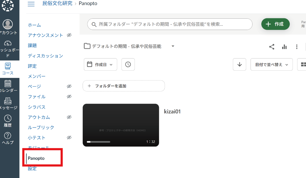 Canvas LMSへログインし、Panoptoへアクセスします。