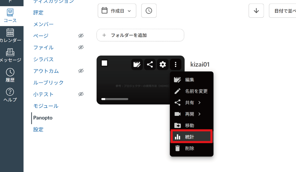 Panoptoにアップロードした動画の視聴データが収集されています。
