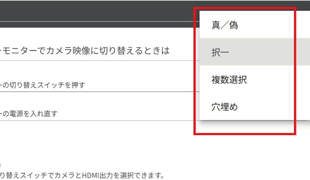 質問の形式は右上のプルダウンから選択することができます。